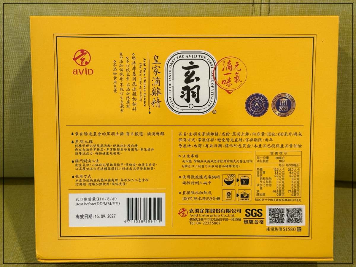 「玄羽滴雞精」誕生於一個最單純的信念——希望家人都能健康、有活力地過每一天。創辦人秉持「以食養生、以心製精」的理念,嚴選苗栗通霄放山黑羽土雞,遵循古法慢火滴煉,低溫精煉11小時,只為保留最天然、最純粹的營養精華。從飼養環境到製程把關,玄羽堅持不添加防腐劑與人工香料,只留下雞肉原有的鮮甜與溫潤。每一滴都是誠實的用心,也是對家人最溫柔的守護。玄羽滴雞精通過NAIF雞肝檢驗(無投藥證明)及SGS檢驗:農藥零檢出.普林零檢出.塑化劑零檢出.重金屬零檢出.動物用藥零檢出|生菌數 / 大腸桿菌 / 大腸桿菌群 / 金黃色葡萄球菌 皆為陰性。就為了讓您可以安全、放心的飲用。