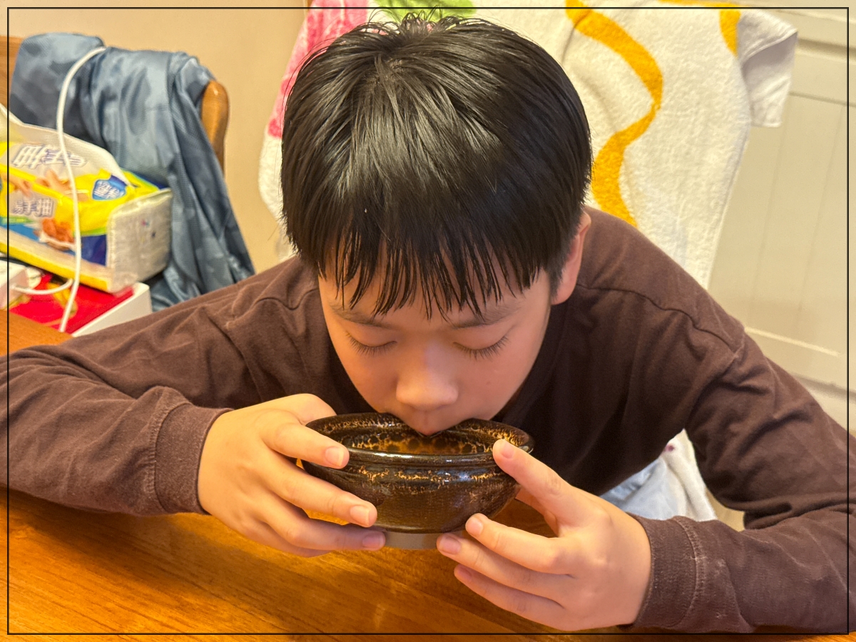 小朋友表示很好喝,有雞湯的香醇感,卻沒有雞湯的油膩,他很喜歡。