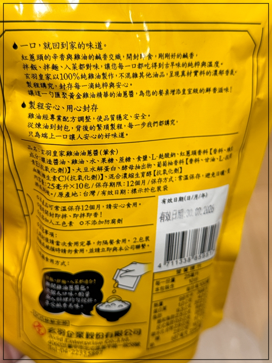 「玄羽雞油蔥醬」使用100%黃金雞油,搭配手工紅蔥酥和天然釀造醬油,醬香、油香、蔥香一次滿足。完全不加防腐劑、沒有人工色素,吃起來香氣濃郁但不會膩。無論是拌飯、拌麵、入菜或煎蛋,只要一匙就能立刻提升香氣層次。是一款讓你輕鬆變大廚的靈魂醬料!讓每一口日常,都有家的味道 ❤️
