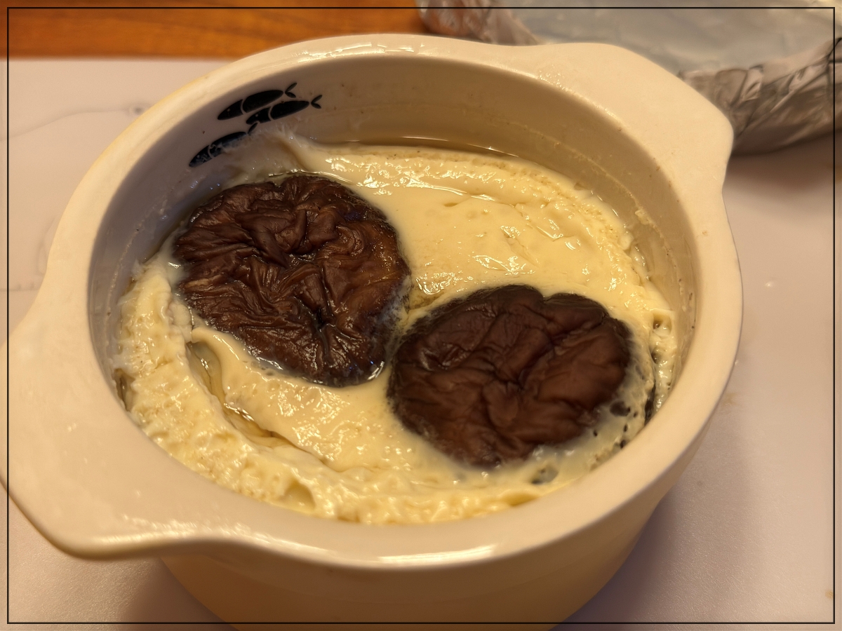 蒸的時候鍋蓋不要完全緊密,要留一條小縫透氣,這是為了避免茶碗蒸表面出現泡沫,蒸出來會比較平整好看。