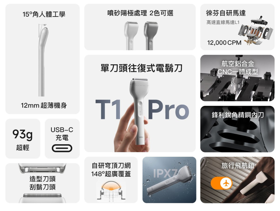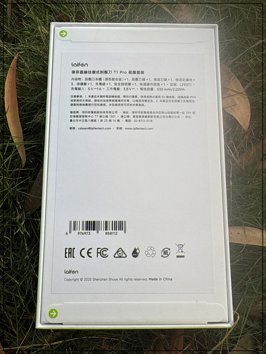 對男生來說,使用刮鬍刀是再自然不過的事,不過我本身鬍子不是很多,長的也沒有那麼快,因此平均大約是2-3天刮一次鬍子,早期一直是使用手動刮鬍刀,因為成本最低。不過手動刮鬍刀有個缺點,就是有時候會不小心刮到破皮,特別是遇到工作繁忙、睡眠不足的時候,臉上有時會長痘痘,這時一不小心就會刮到破皮,雖然沒有到一直流血的程度,但下巴有個破洞也是挺不舒服的。後來趁著賣場特價買了一支電動刮鬍刀,電動刮鬍刀在使用時是比手動刮鬍刀要安全多了,因為刀片不會直接接觸肌膚,至少再也沒有出現刮到流血的狀況,不過電動刮鬍刀的缺點就是清洗比較麻煩,平時保養用個幾次就要打開清理裡面的鬍渣,一段時間後還要用洗潔劑清洗,另外就是電動刮鬍刀體積有點大,外出時攜帶頗佔空間。到底有沒有既有電動刮鬍刀的便利、又有手動刮鬍刀般輕便的產品呢?這就是我這次要推薦的【Laifen T1 Pro 往復式電動刮鬍刀 造型套組】了。