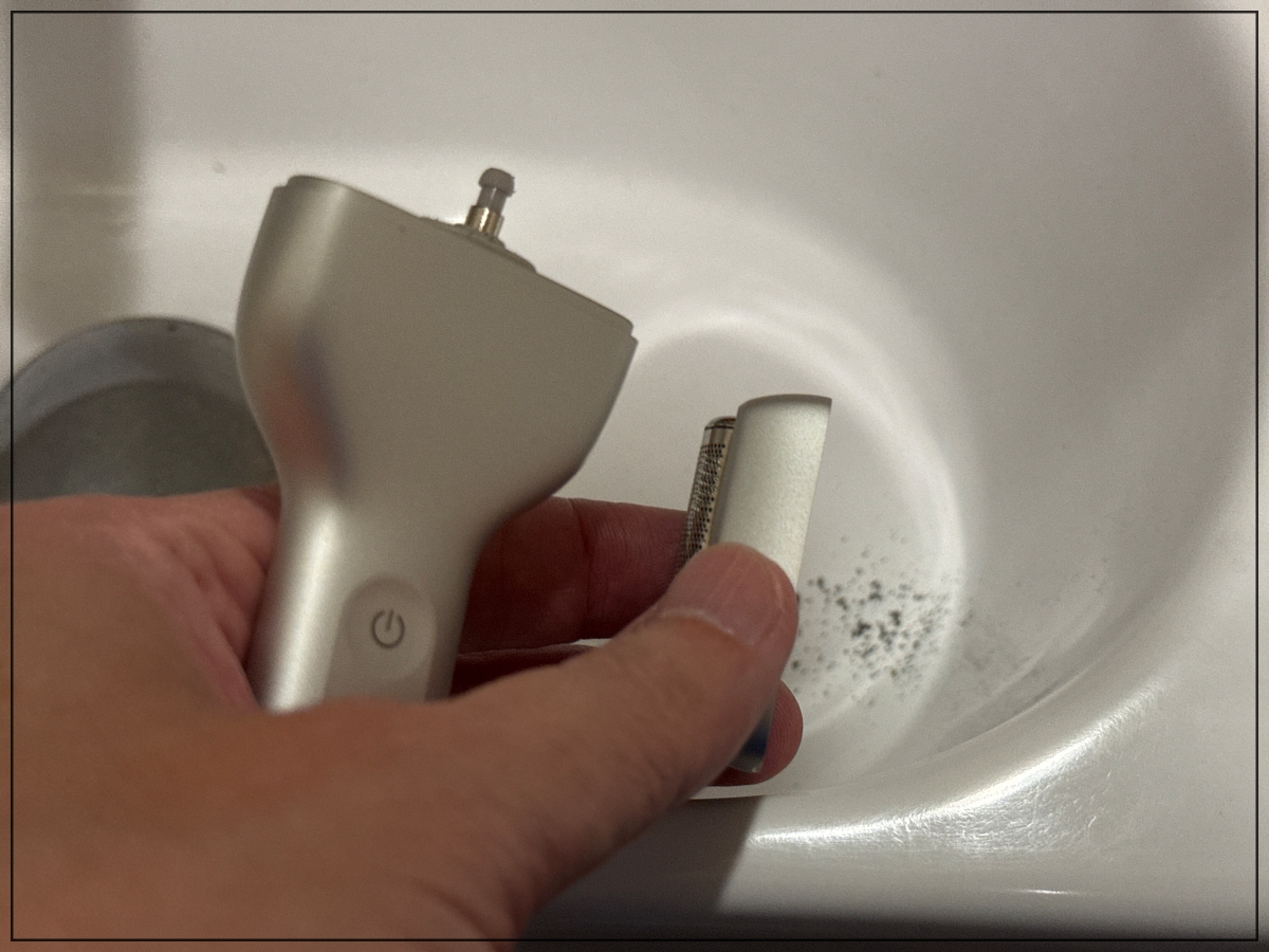清潔時先拆下磁吸刀頭,將刀頭內的鬍鬚倒出,然後直接沖水就可以了。