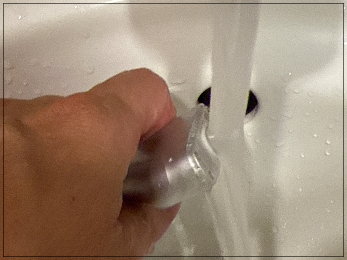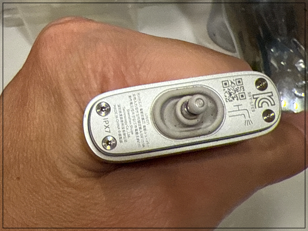 上面有水龍頭圖示表示是可以直接沖水的,防水等級為IPX7。