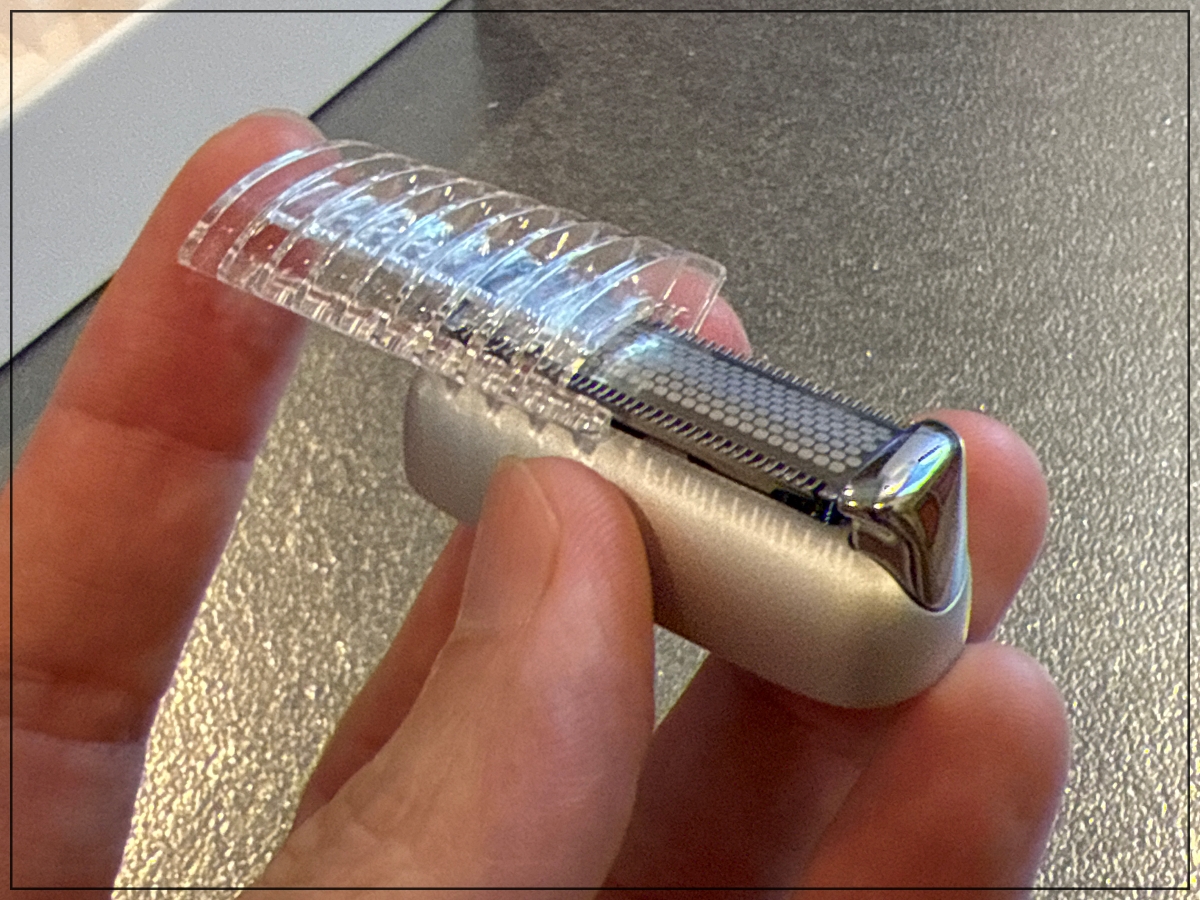 齒梳的用法是直接從側邊卡入長鬚刀頭,本圖為5mm齒梳。